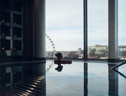 I vårt prisbelönta spa bjuds du in till en oas av lugn och välbefinnande. Upplev Göteborgs högst belägna hamam, njut av värmen i våra torr- och ångbastur, och låt kroppen omslutas av våra tre unika pooler – den kraftfulla jetstreampoolen, den mjuka softpoolen och vår ikoniska, frihängande utomhuspool med glasgolv som svävar över stadens ljus.